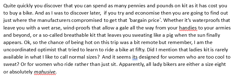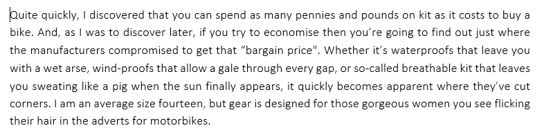 In the first chapter, Louise passes her motorbike test and goes to buy some kit to wear on her new bike. This was her draft: